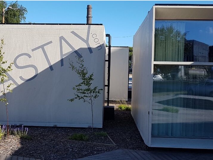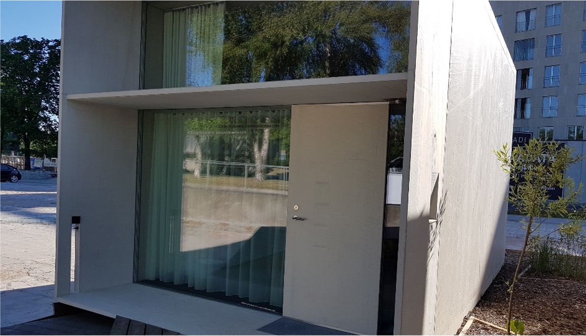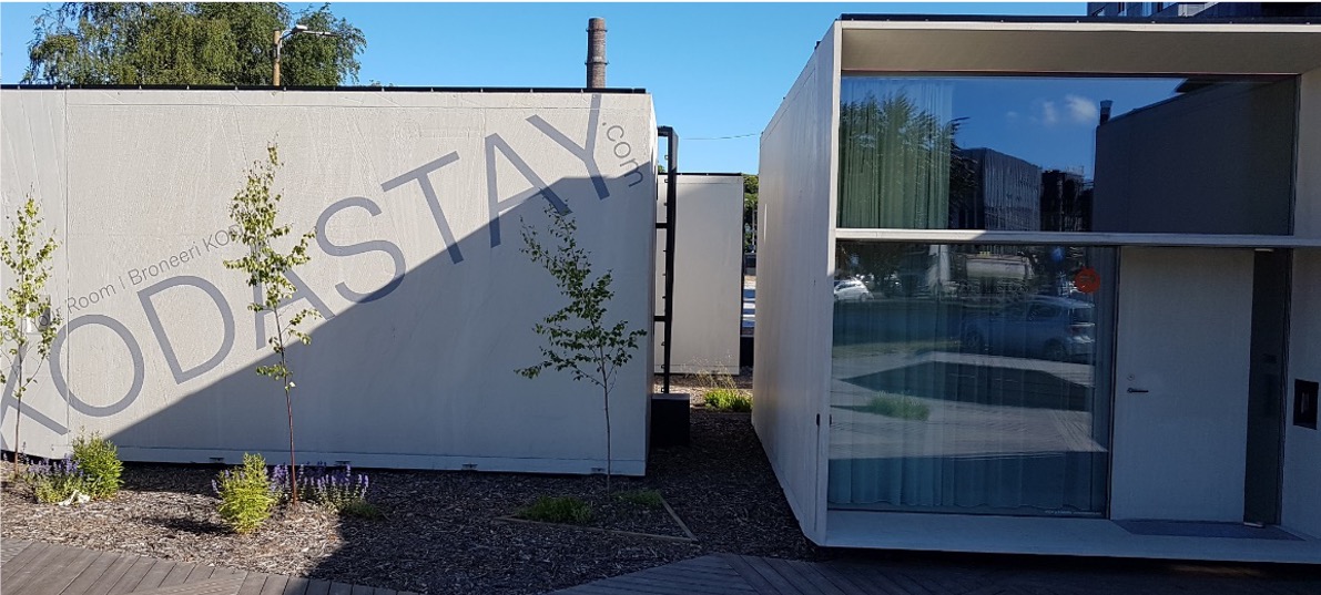 Prefab modular houses made in Estonia. The element thickness of walls, floor and ceiling is 7 cm and only fibre reinforced concrete. No fibres visible at the surface of elements made with white cement.