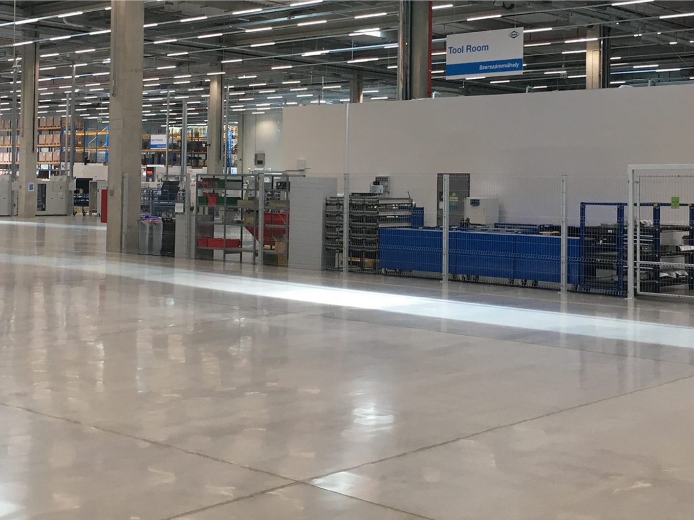 New construction of the production hall and warehouse for the automotive specialist Dana Hungary Kft. It is a classic industrial floor with cut joints at a distance of 6 x 6 m. The customer asked for a risk-free solution consisting of a synthetic fibre in combination with a static design based on the current European standards. Supported by AVERS Fiber Kft., our qualified partner in Hungary.